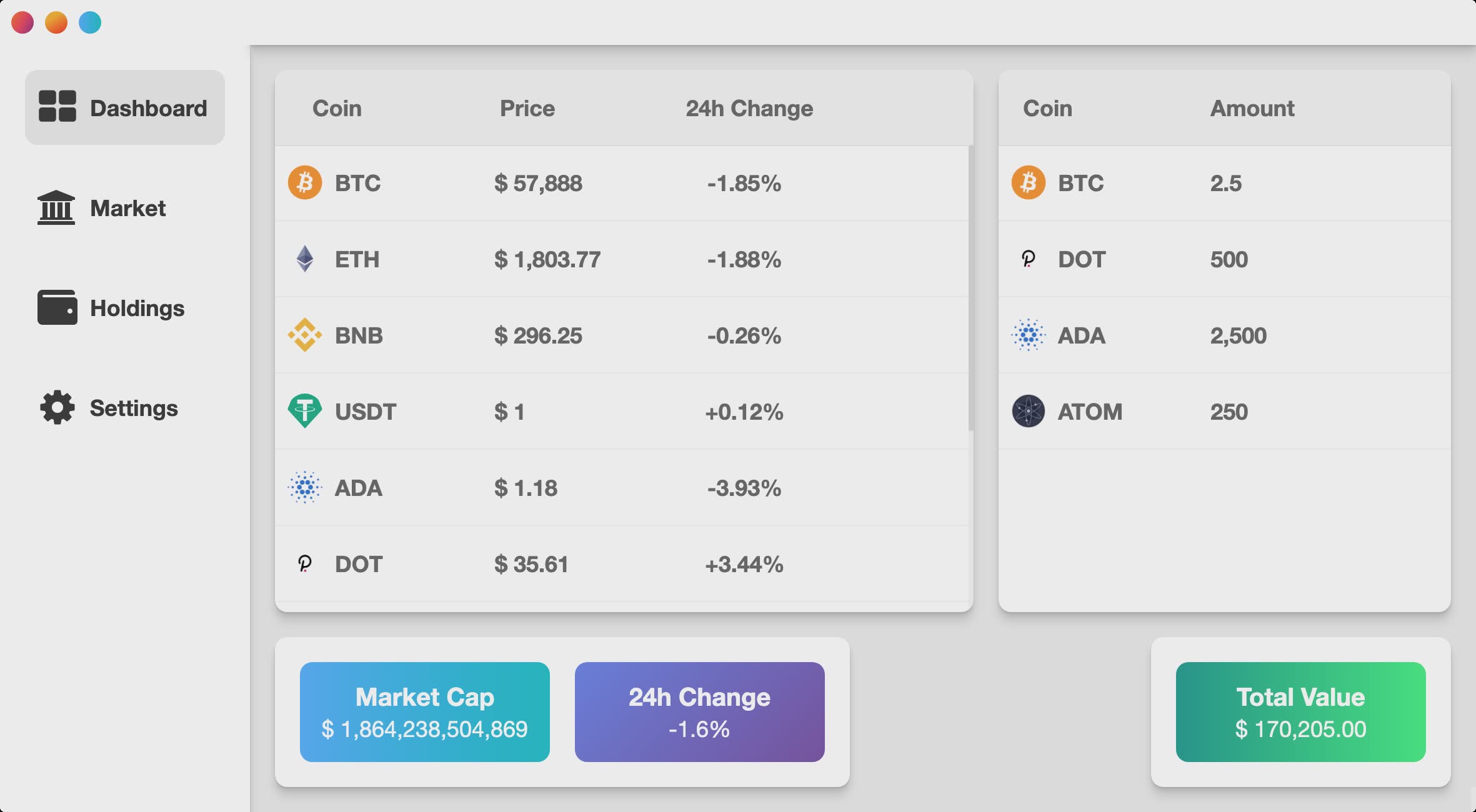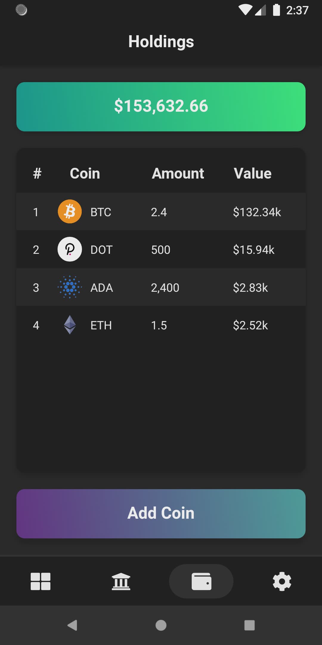 Cryptofolio is an open-source, and self-hosted solution for tracking your cryptocurrency holdings. It features a web interface, an Android mobile app, and a cross-platform desktop application for Windows, macOS, and Linux. These three platforms all work using a RESTful API, which you'd have to host yourself.