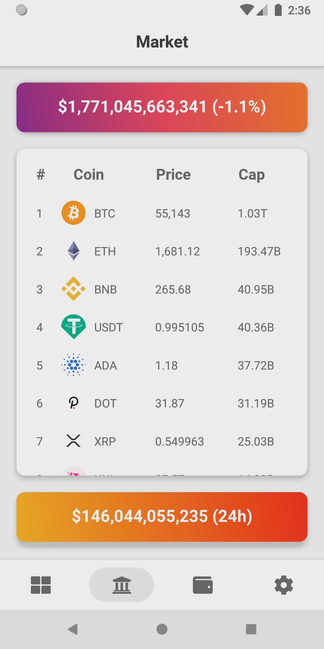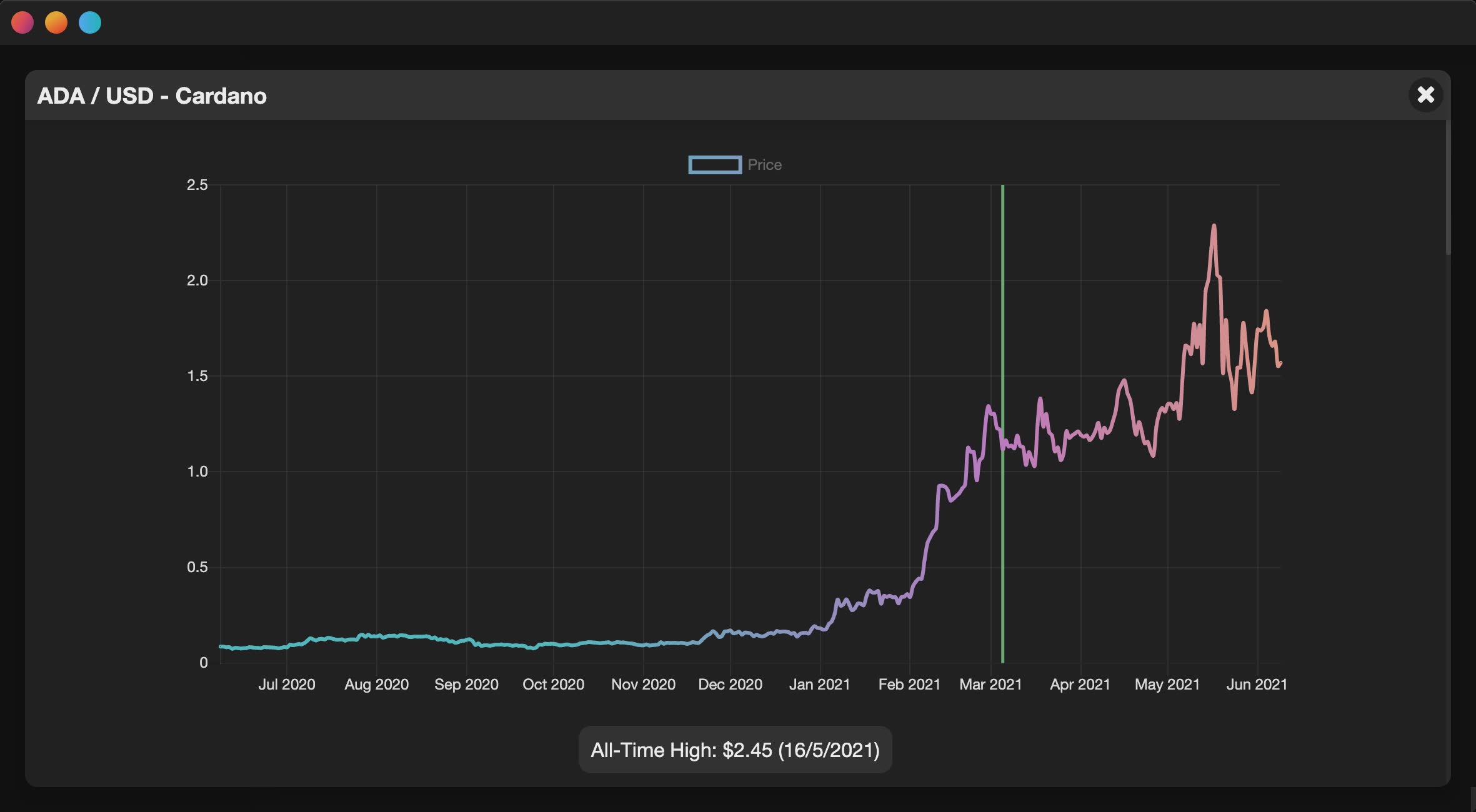 The price chart of Cardano (ADA), accessed through the "Market" page of the app.